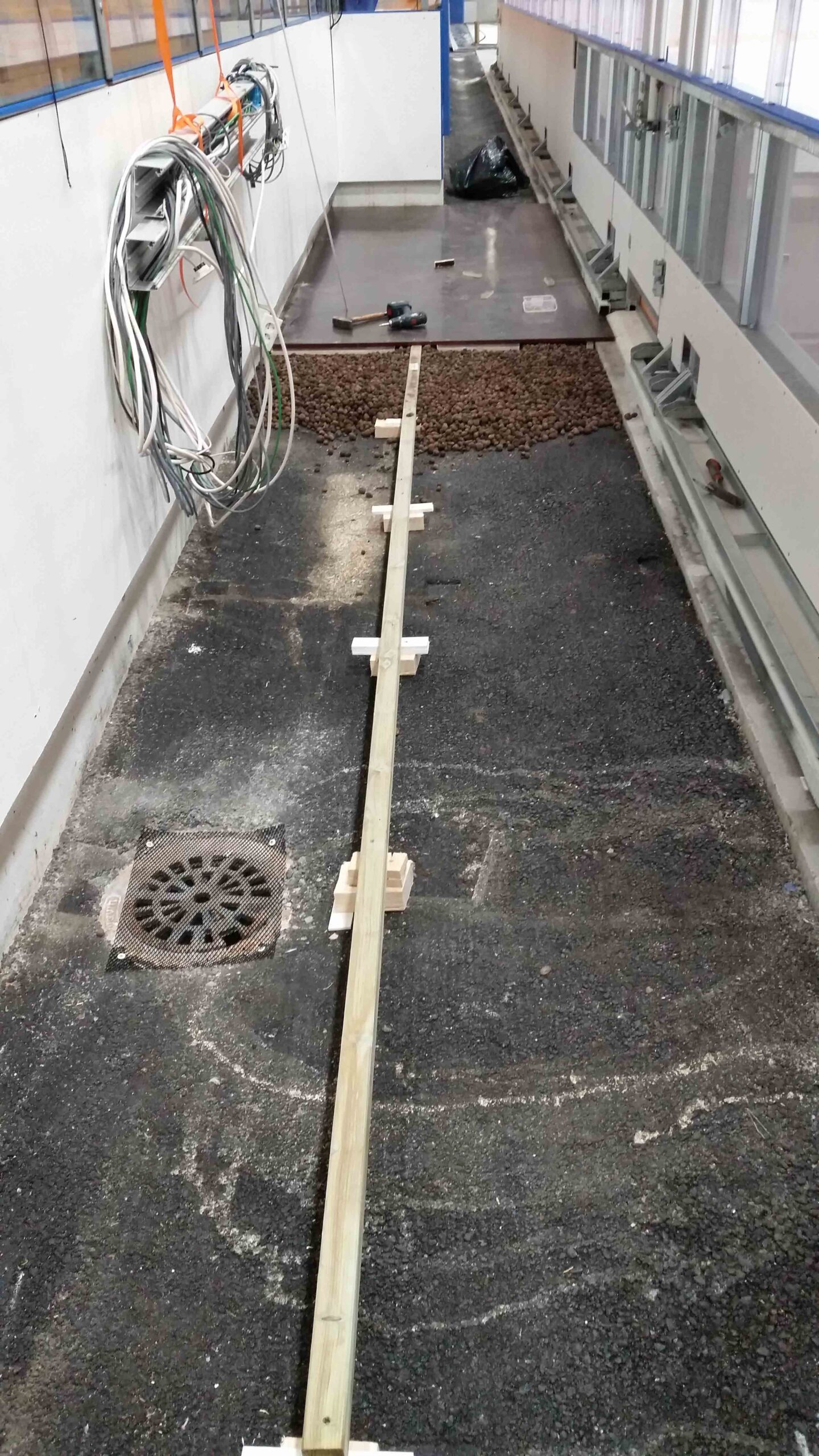 Selve isen hviler på et nytt og nøyaktig avrettet betongdekke. Denne nøyaktigheten er en forutsetning for at kjøleanlegget skal kunne levere en stabil isflate med minimalt energiforbruk og gjøre hallen til en energieffektiv isbane .