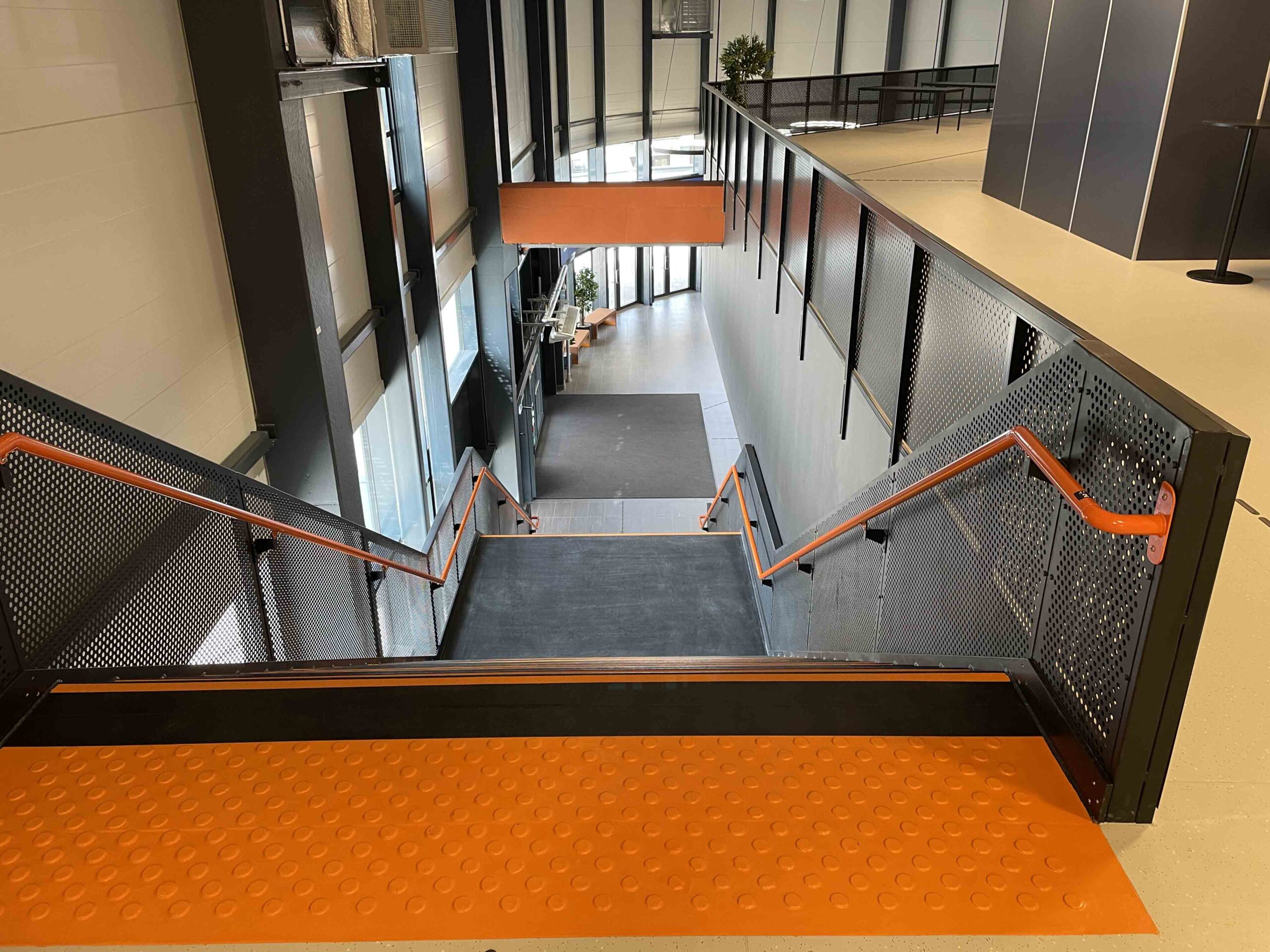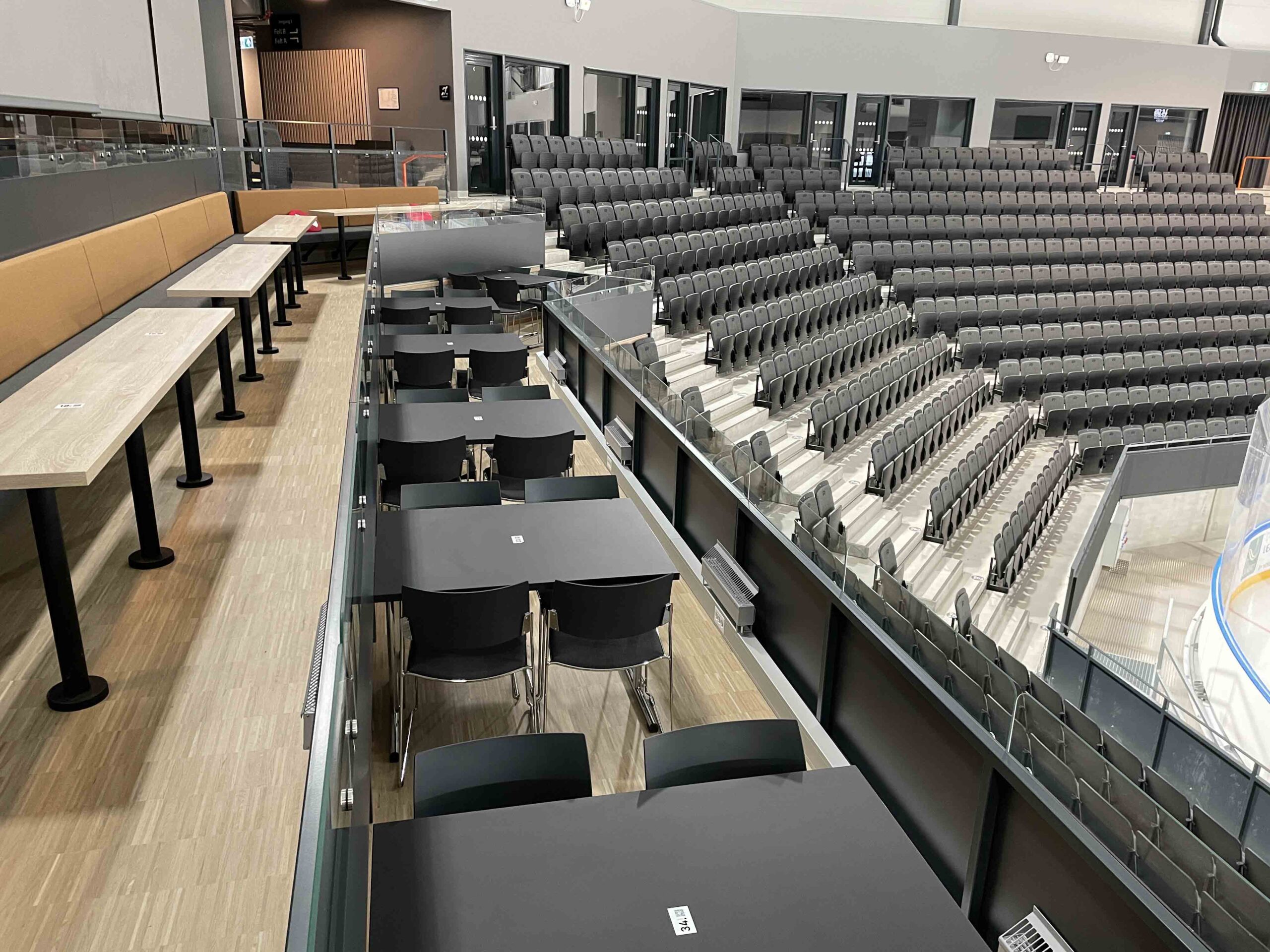 Maksimal sikkerhet og universell utforming For å ivareta spillernes sikkerhet ble arenaen utstyrt med vantsystemet VePe PRO, kjent for sin overlegne fleksibilitet og kollisjonsdemping. Leveransen inkluderte også spesialdesign og montering av ståltrapper og glassrekkverk i hallen, utført i henhold til TEK17-kravene for universell utforming.