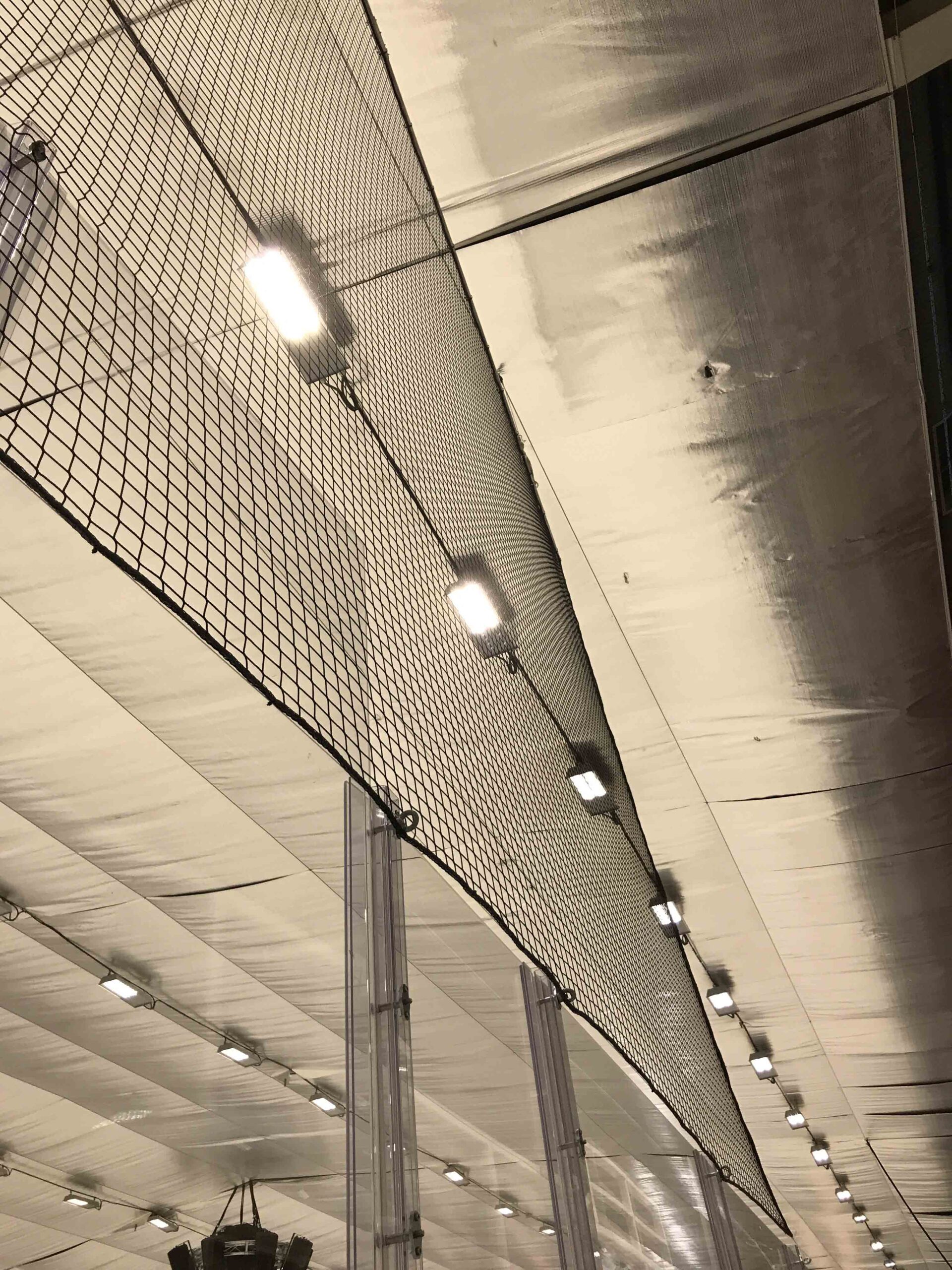 Profesjonelt beskyttelsesnett i sort polyamid for ishaller og arenaer. Monteres bak mål og langs banen for å beskytte tilskuere mot puck og spillerutstyr.