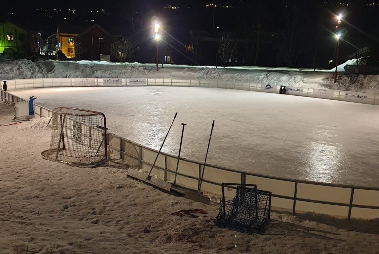 ISBAT vantsystem for 30×15 m bane. Komplett vantsett inkludert levering og prosjektering. Tilpasset utendørs kunstisbaner.