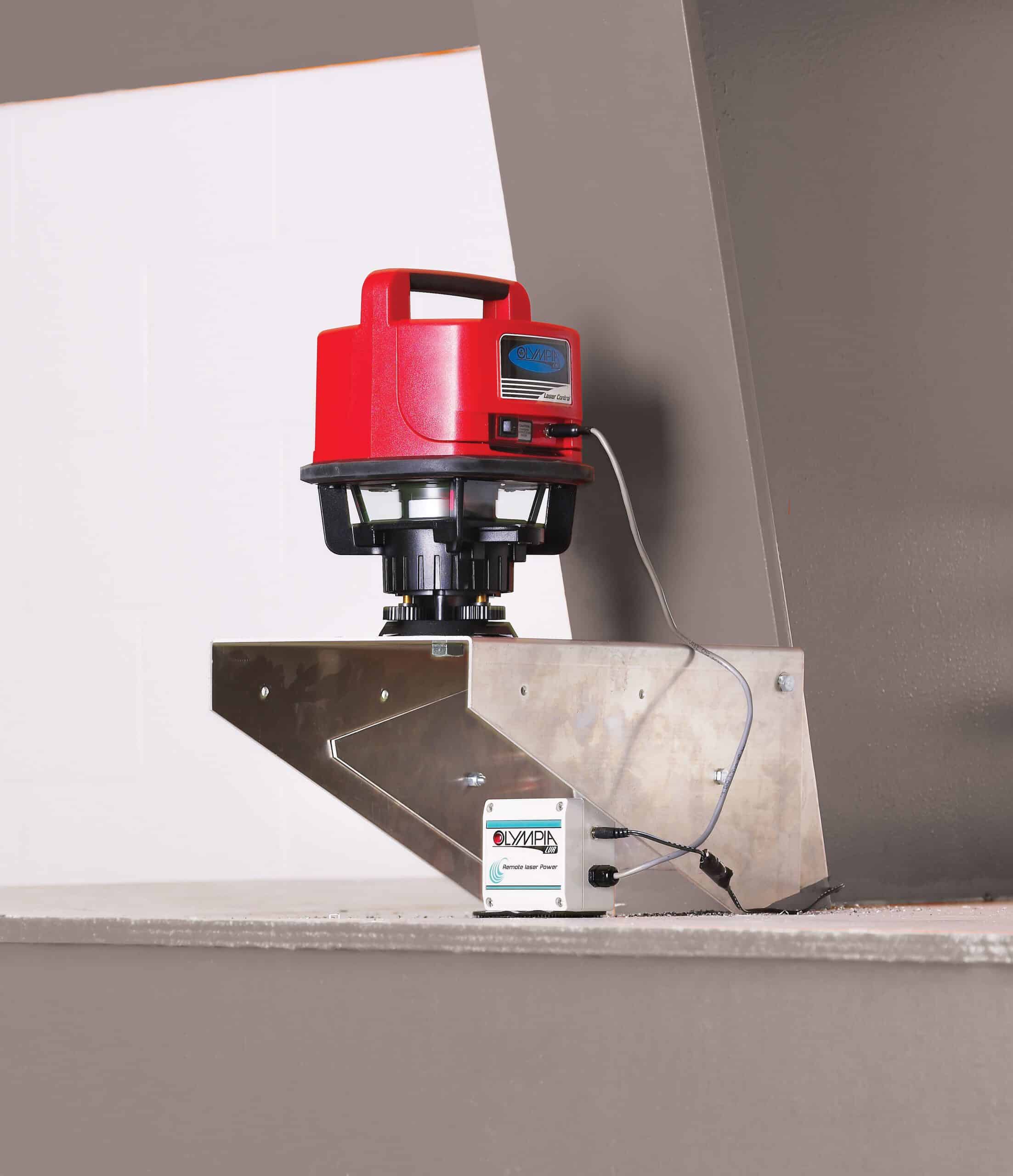 Laserutstyr til banemerking fra Olympia LVR. Presis laserteknologi for nøyaktig plassering av linjer og merking på isflater.